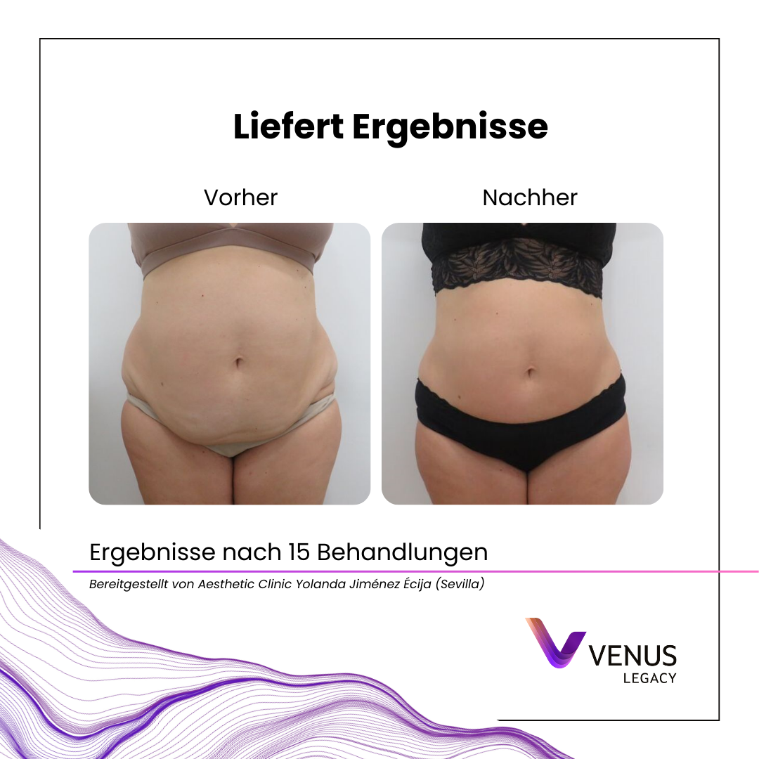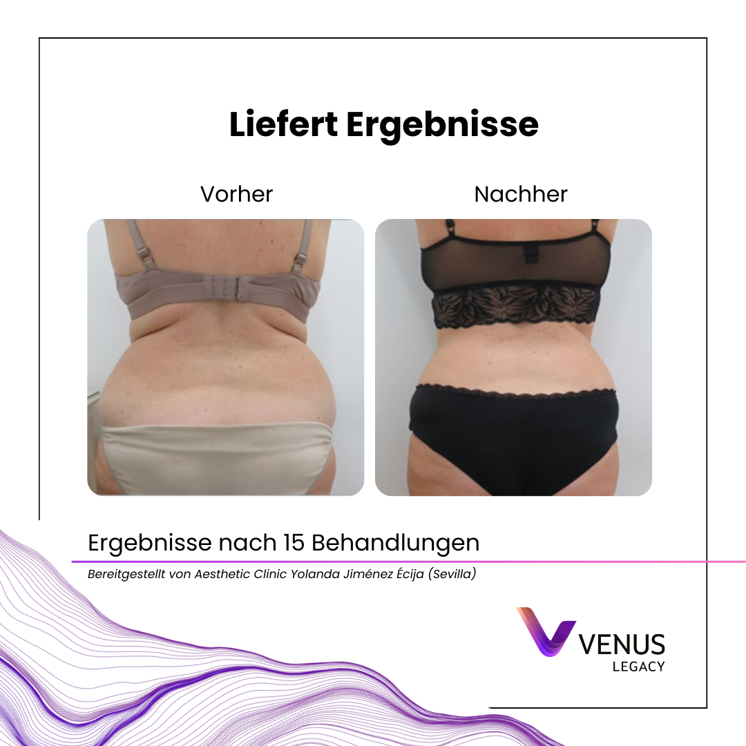 Mit dem Alter produziert Ihr Körper weniger Kollagen und speichert mehr Fett, was zu Cellulite, schlaffer Haut, Falten und anderen Alterserscheinungen führen kann. Venus Legacy ermöglicht sichere, effektive und angenehme Behandlungen ohne Ausfallzeit zur Körperkonturierung, Cellulite Glättung, Straffung von schlaffer Haut und Reduzierung von feinen Linien und Falten bei Gesicht und Körper. Das innovative nicht-invasives Gerät kombiniert Radiofrequenz mit Magnetfeldtechnologie, um die Haut sichtbar zu straffen und das Gewebe von innen zu regenerieren.